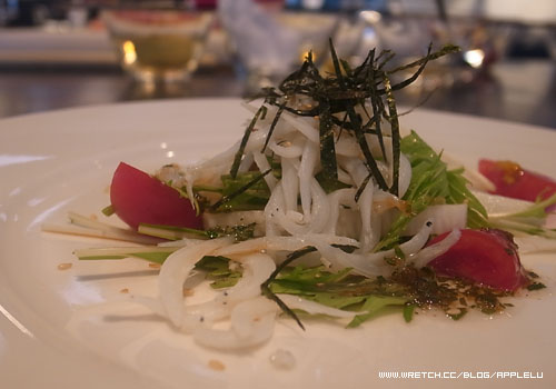 水菜山藥吻仔魚沙拉& 紫蘇葉蘋果沙拉醬 (名字超長的....)