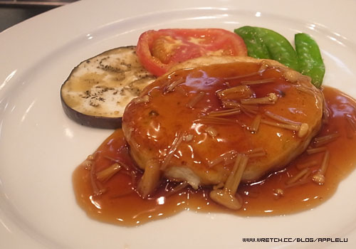 漢堡肉配蔬菜再加上醬汁, 一道色香味美又不油膩的漢堡餐就完成了(天呀, 一點都吃不到豆腐味, 太棒了)