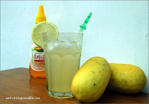 一顆香水檸檬通常份量較多, 一個蛋糕常用不到一顆, 剩下的檸檬就擠了汁加點蜂蜜, 放些冰塊。