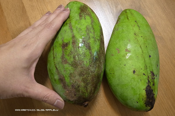 所以氣不過, 週二市場開市, 趁著上班前到市場繞了一下, 果然讓我看到了超大芒果青也就是金煌芒果青, 這兩顆也才55元而已呀~